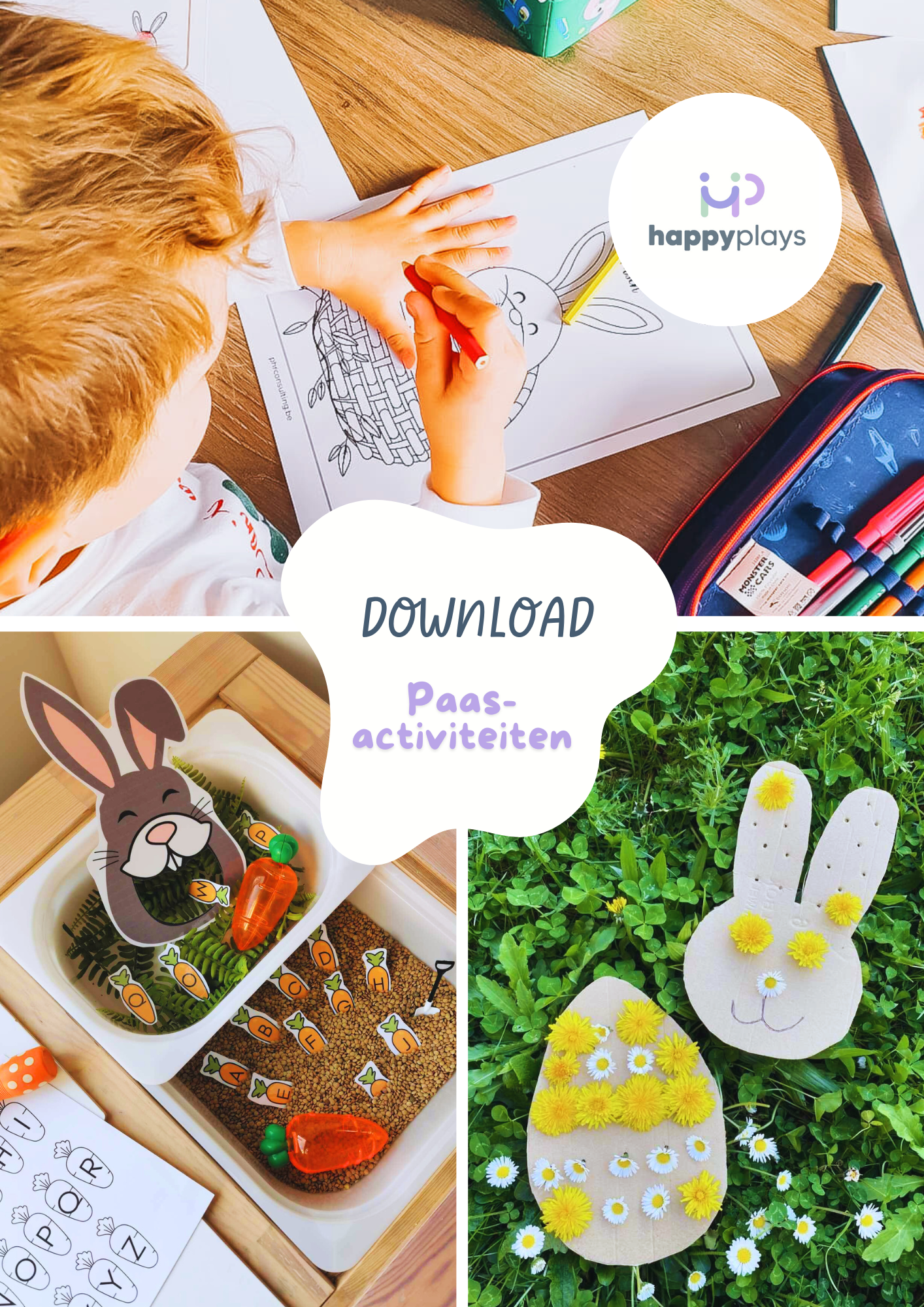 DownloadOp zoek naar leuke en eenvoudige paasactiviteiten zonder zelf alles te moeten bedenken? In deze download vind je een gevarieerd doeboek boordevol kleurplaten, speelse opdrachten, spelletjes, sensorische ideeën en inspiratie voor buiten.