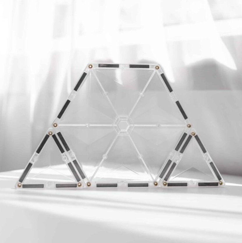 Deze set bevat transparante, afgeschuinde magnetische tegels in allerlei vormen – inclusief extra grote zeshoeken! Dankzij het doorzichtige design kan je kind letterlijk een hele nieuwe wereld van Connetix-spel ontdekken.