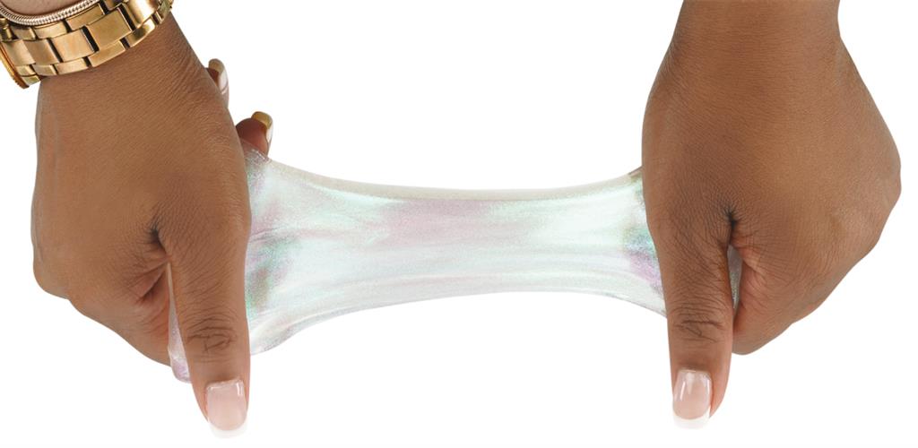 Net als glam make-up die glinstert en van kleur verandert bij elke beweging, schittert Get Ready With Me! Deze kristalheldere putty met roze en groenblauwe glittertjes schittert en verandert in het licht.