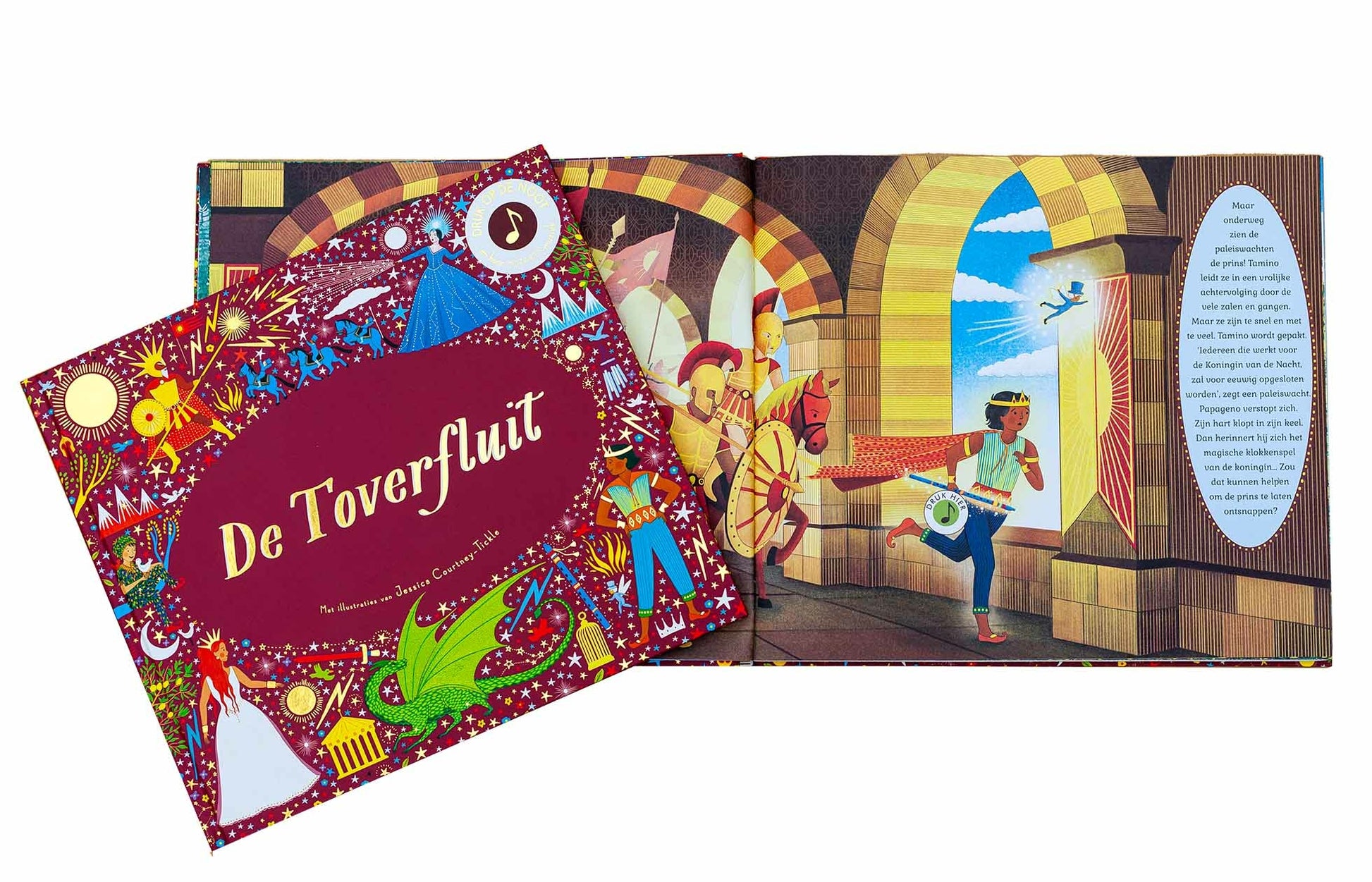 De prachtige illustraties van paleizen, prinsessen en draken komen tot leven dankzij de echte muziekfragmenten die je kunt activeren via de drukknopjes in het boek. Zo wordt lezen een compleet zintuiglijk avontuur, waarbij kijken, luisteren en fantaseren samenkomen.