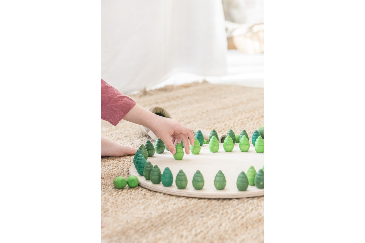 Kinderen kunnen de boompjes sorteren, spiegelen, herhalen en combineren, wat niet alleen creativiteit stimuleert maar ook concentratie, ruimtelijk inzicht en logisch denken versterkt. Het herhalende karakter van mandalaspel werkt bovendien kalmerend en ontprikkelend, ideaal voor kinderen die nood hebben aan focus of rust.