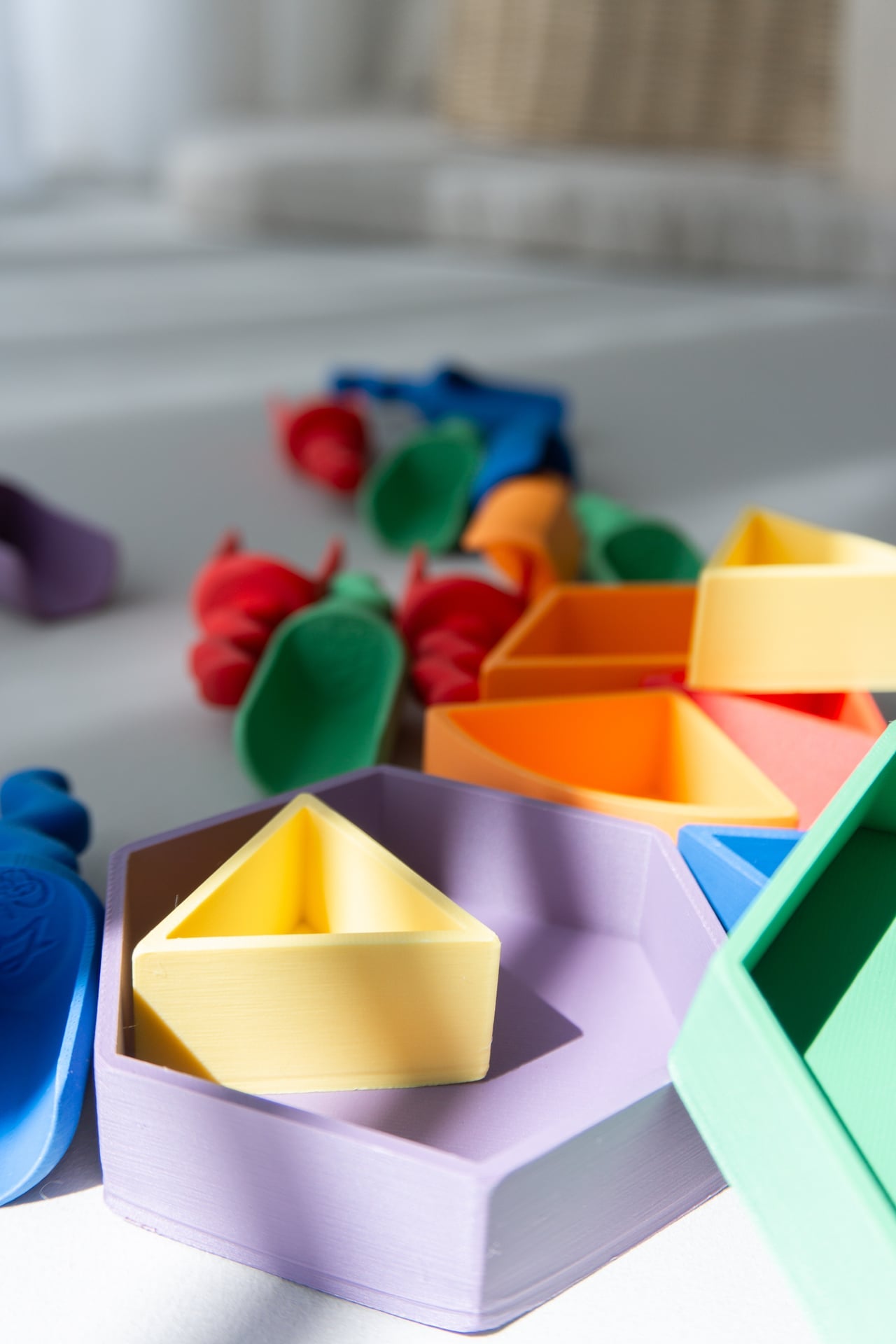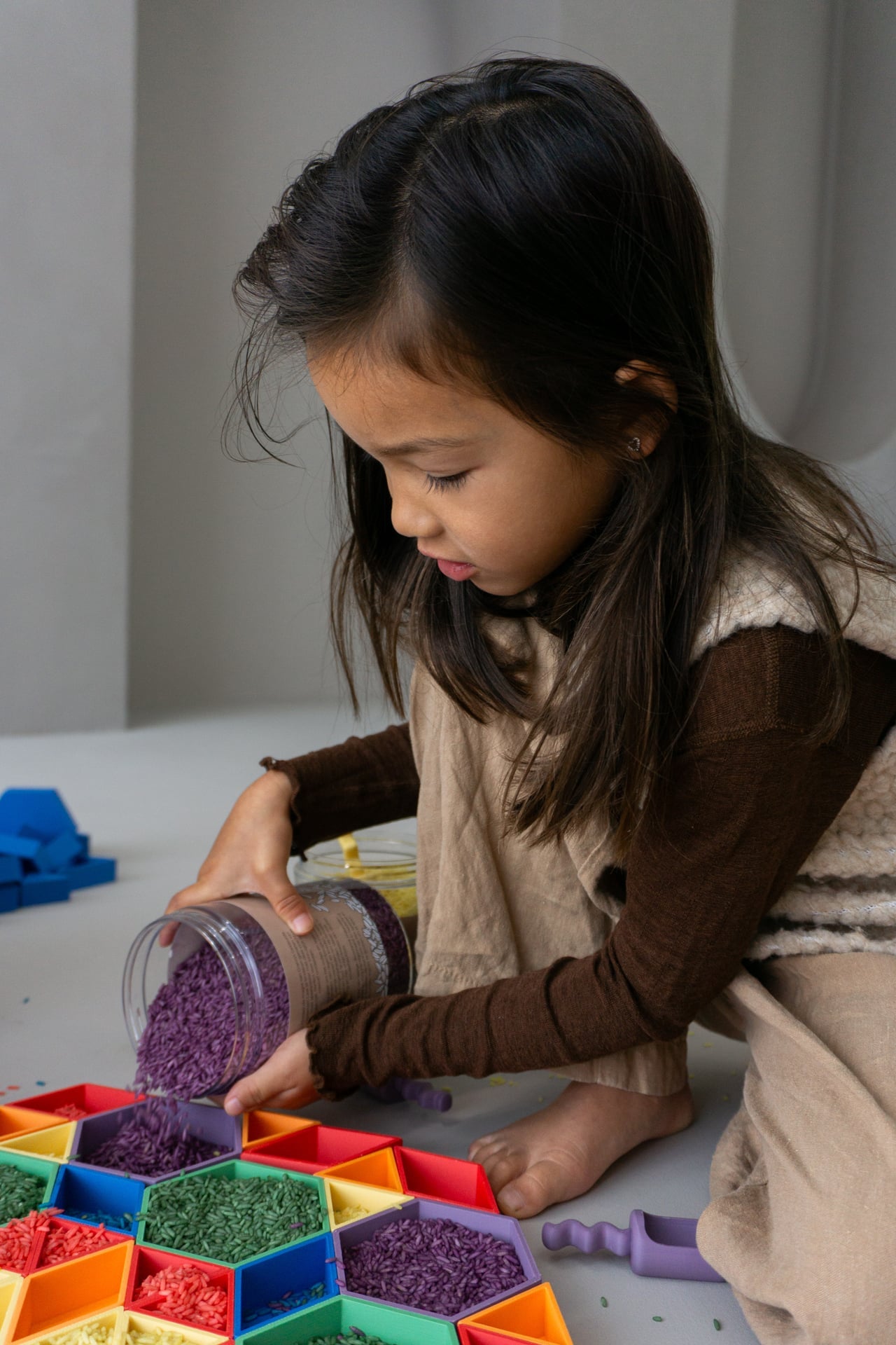 Mandigo geeft kleur aan elk spel! Deze kleurrijke bakjes nodigen kinderen uit om eindeloos te vullen, scheppen en sorteren. Spelenderwijs oefenen ze tellen, patronen leggen en hun fijne motoriek.