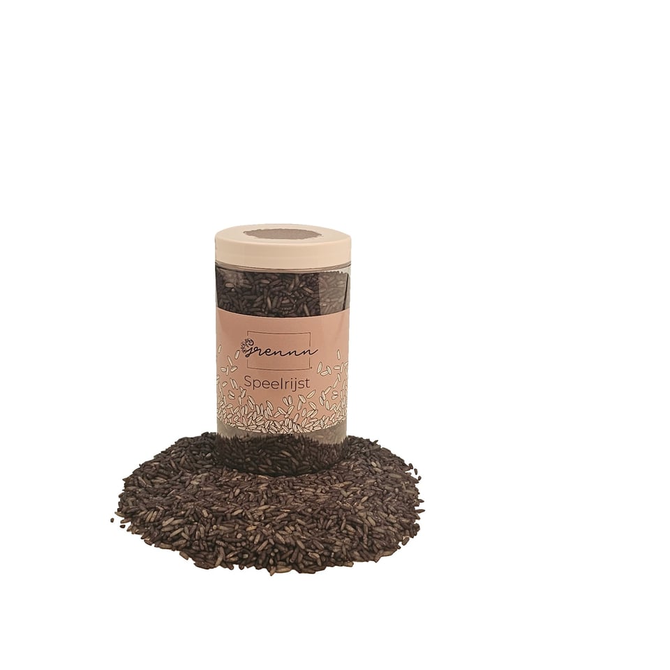 Na het spelen kan de rijst weer eenvoudig terug in de voorraadpot en worden opgeborgen op een droge plek.