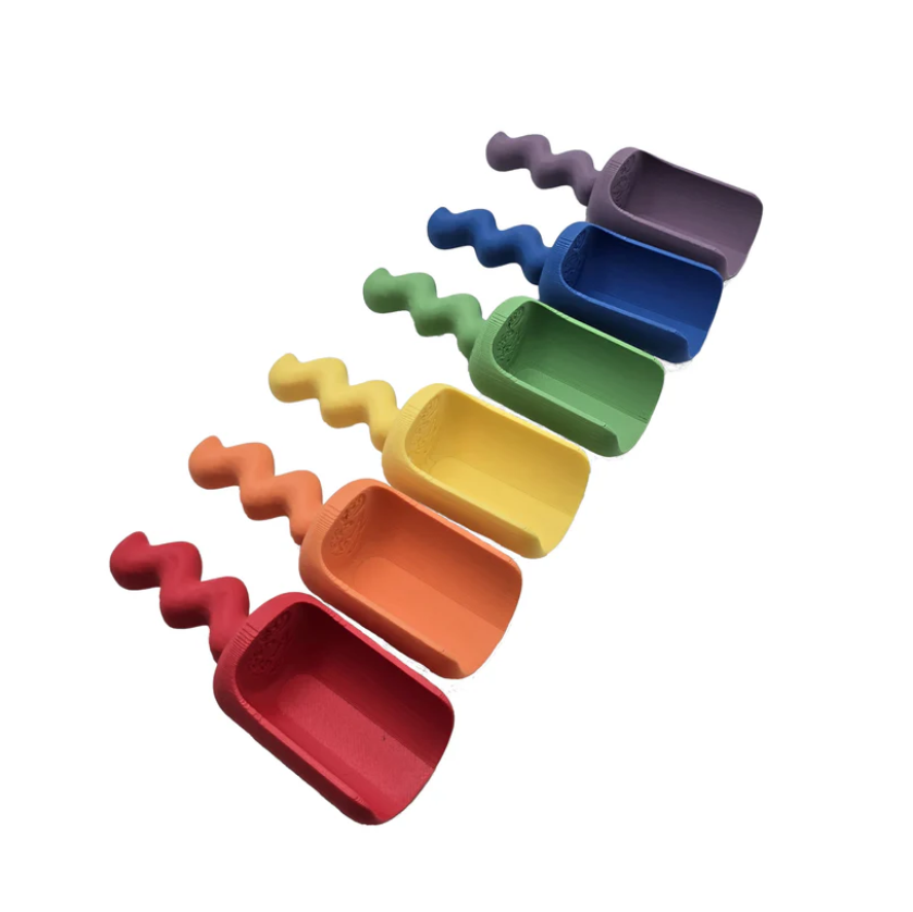 Het ontwerp sluit helemaal aan bij de herkenbare Waves-stijl van Little Botanic Label. Het verfijnde wave-patroon zorgt ervoor dat het schepje moeiteloos door sensorisch materiaal zoals zand of speelrijst glijdt. Ideaal voor open-einde spel en het ontwikkelen van fijne motoriek.