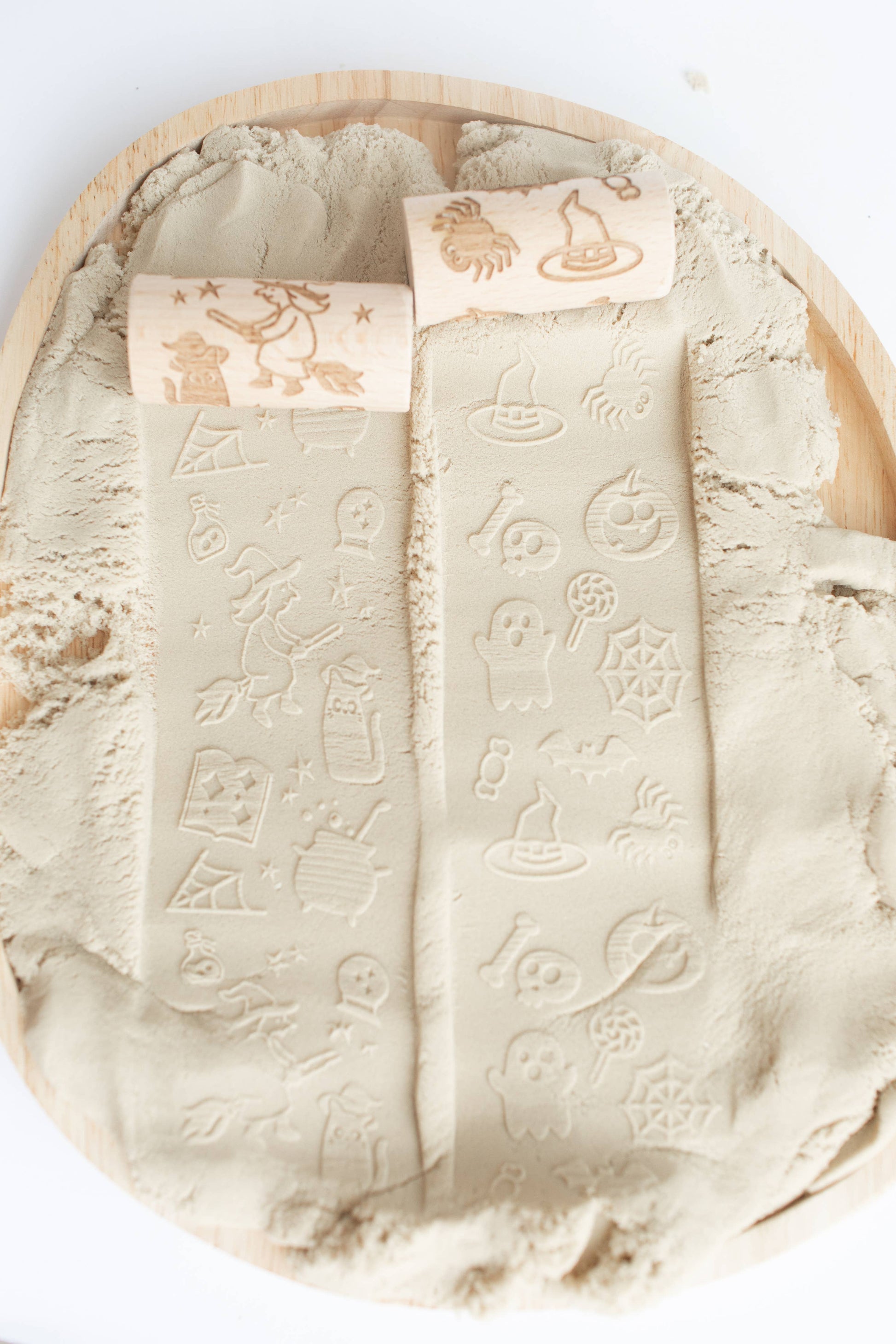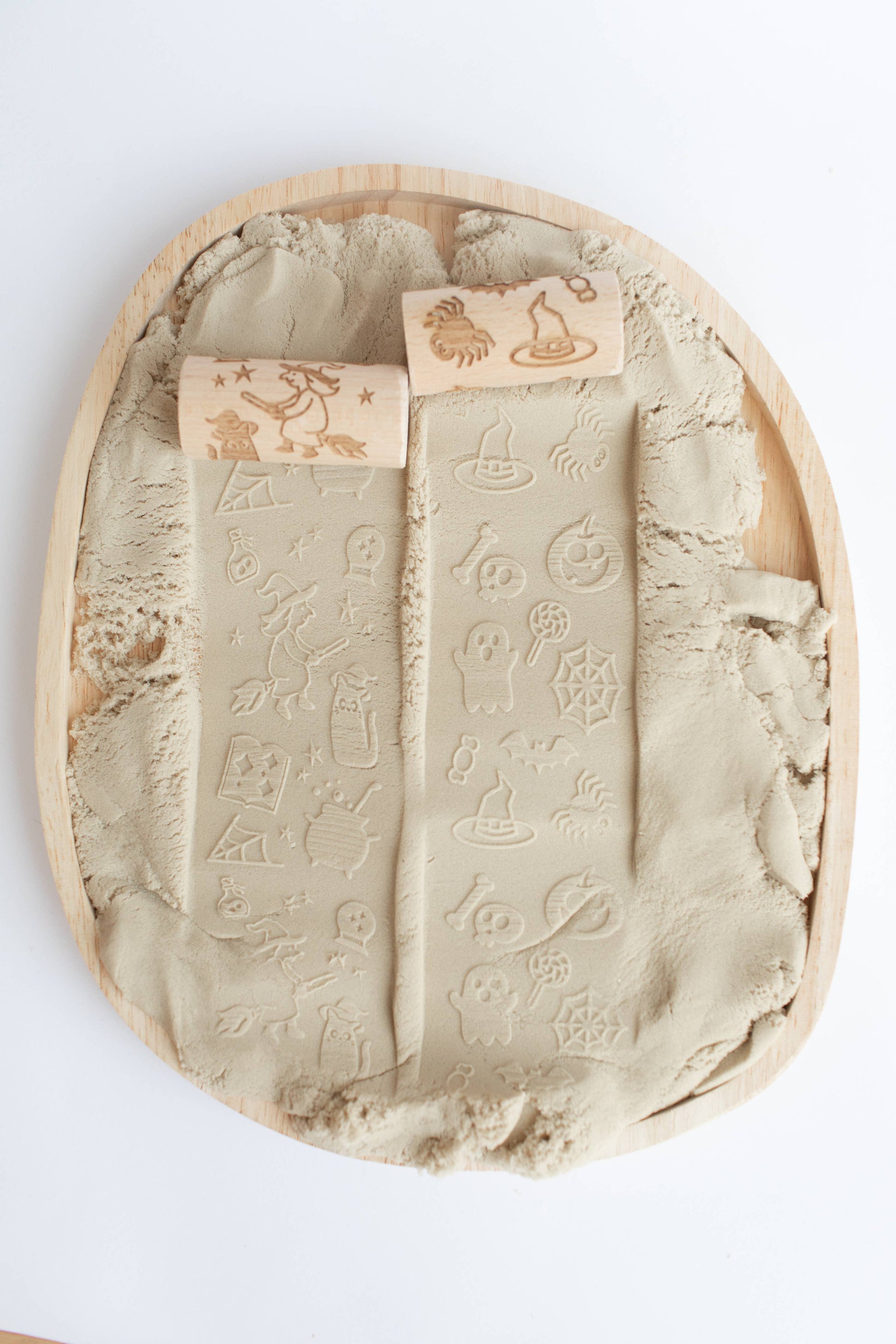 Dit is een product uit natuurlijk materiaal, de tekening op het hout en de tint van het hout kan daardoor afwijken van de afbeelding. De rollers zijn niet geschikt voor magnetisch zand, enkel voor modelleer/speelzand!