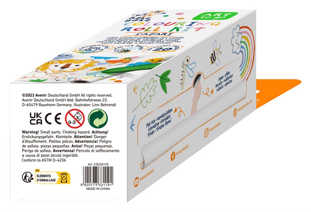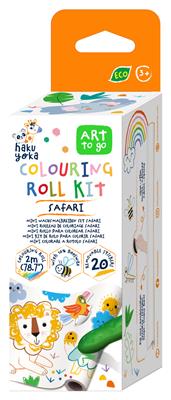Ga op safari-avontuur met de mini kleurrol van Haku Yoka! Deze compacte tekenkit bevat een afscheurbare kleurrol van 12 x 200 cm, waarmee kinderen één grote of meerdere kleine tekeningen kunnen maken. Het rolpapier is voorzien van leuke safari-illustraties die uitnodigen om in te kleuren, te versieren en zelf verhalen te verzinnen.