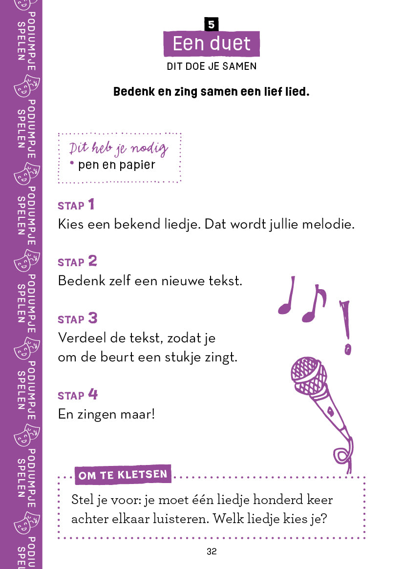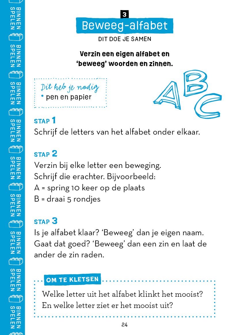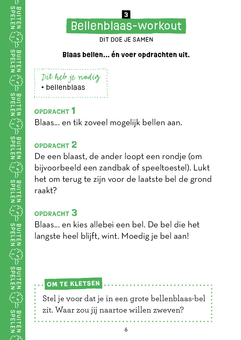 Elke categorie bevat inspirerende activiteiten, ruimte voor eigen ideeën én een vrolijke kletsvraag op elke pagina. Zo maak je van elk moment een leuke en verbindende ervaring.
