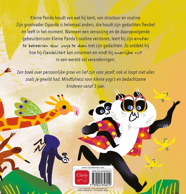 Kleine Panda houdt van structuur en vaste gewoontes. Zijn opa Opanda daarentegen leeft in het moment en denkt heel flexibel. Wanneer onverwachte gebeurtenissen Kleine Panda’s routine door elkaar schudden, ontdekt hij hoe yoga en mindfulness hem kunnen helpen om emoties te reguleren en rust te vinden.