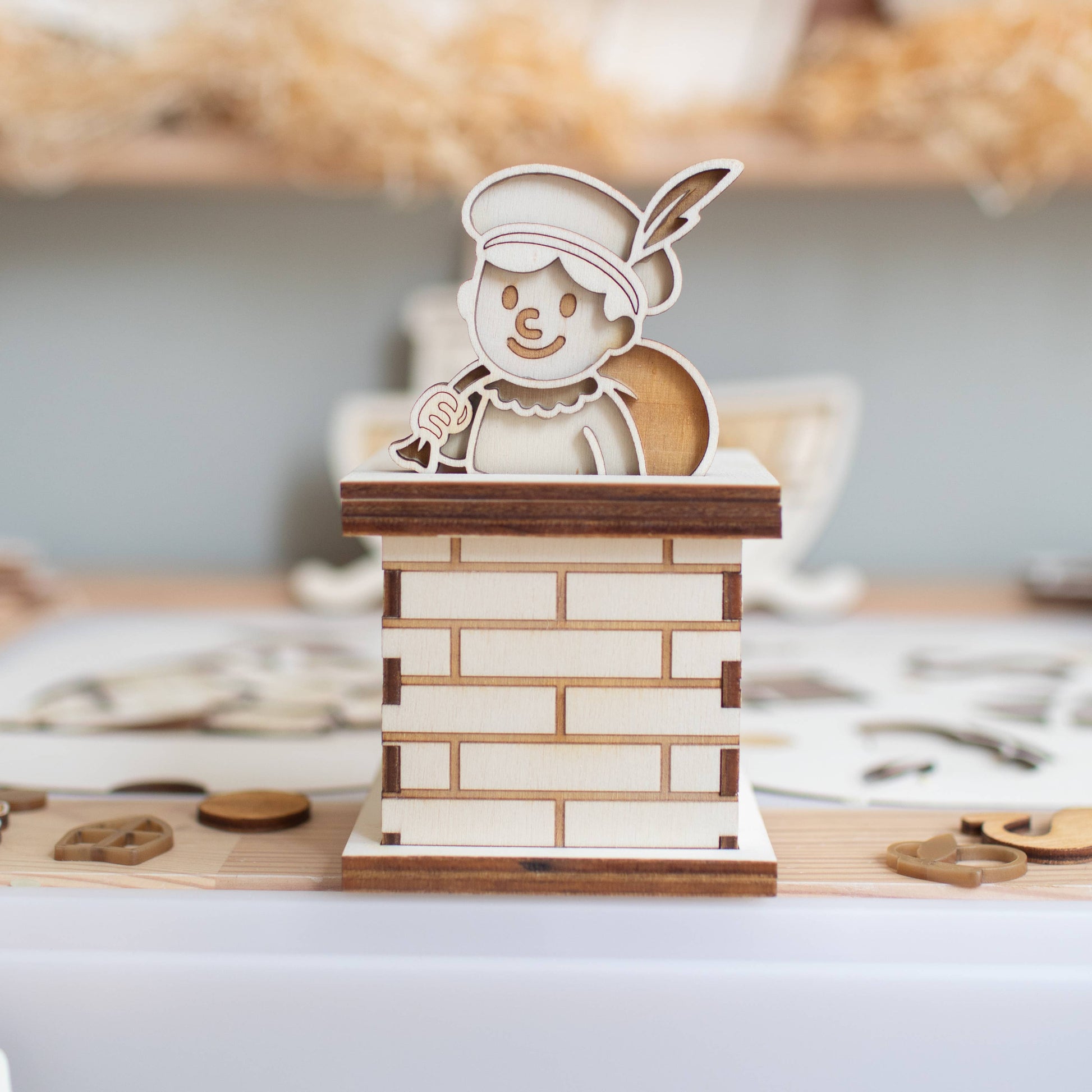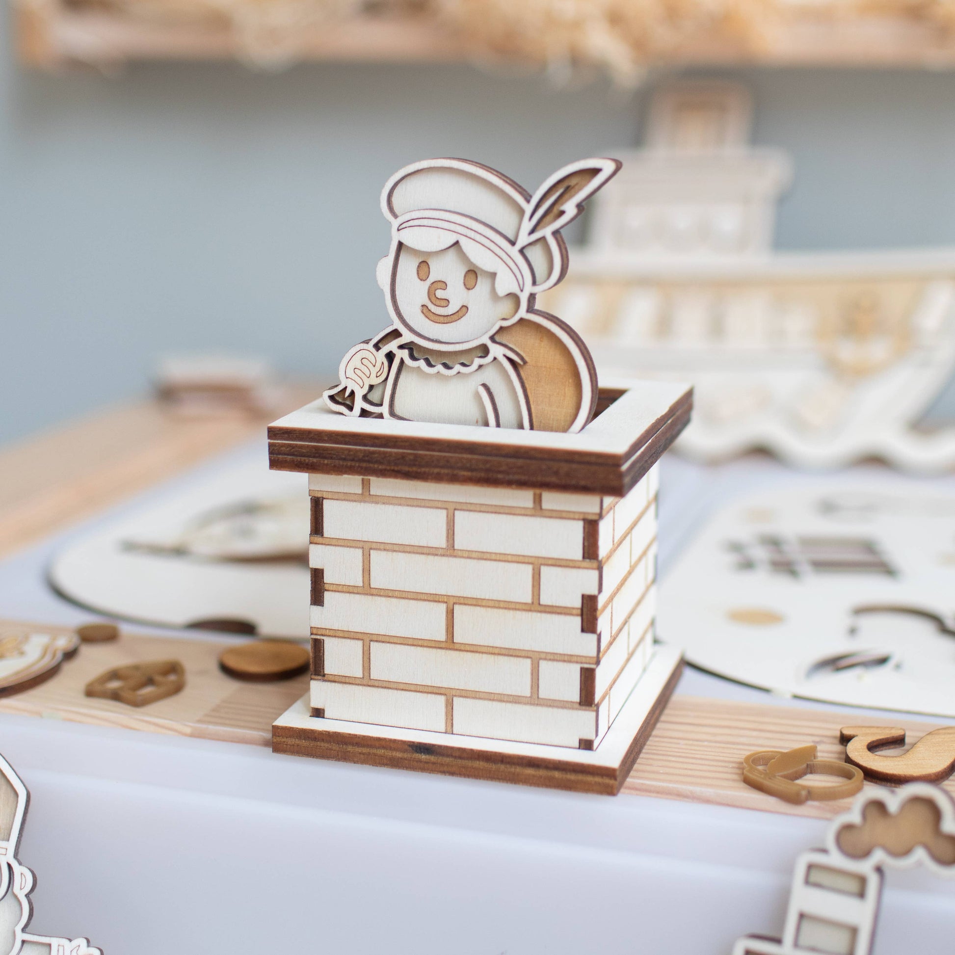 Een geweldig en veelzijdig bouwpakket voor in de speelbak/tafel, seizoenstafel of bij je schoen! Dit pakket bestaat uit: Een schoorsteen van hout (bouwpakket). Exclusief figuur.