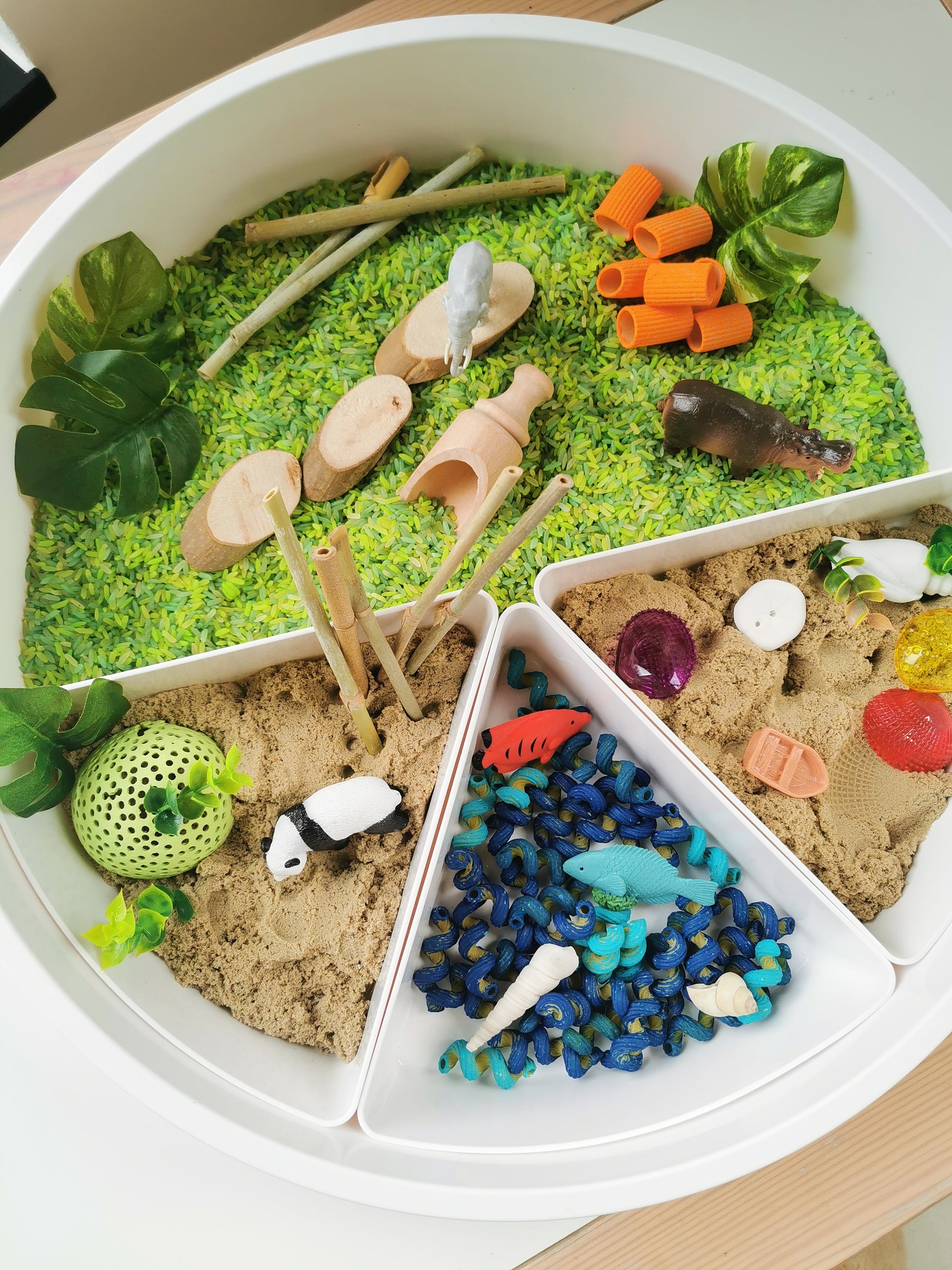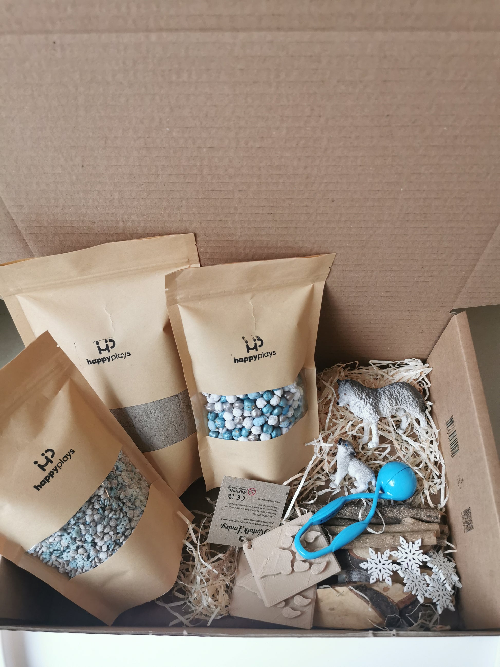 Elke box bevat een mix van sensorische materialen, open einde speelelementen én speelsuggesties op maat van verschillende leeftijden.