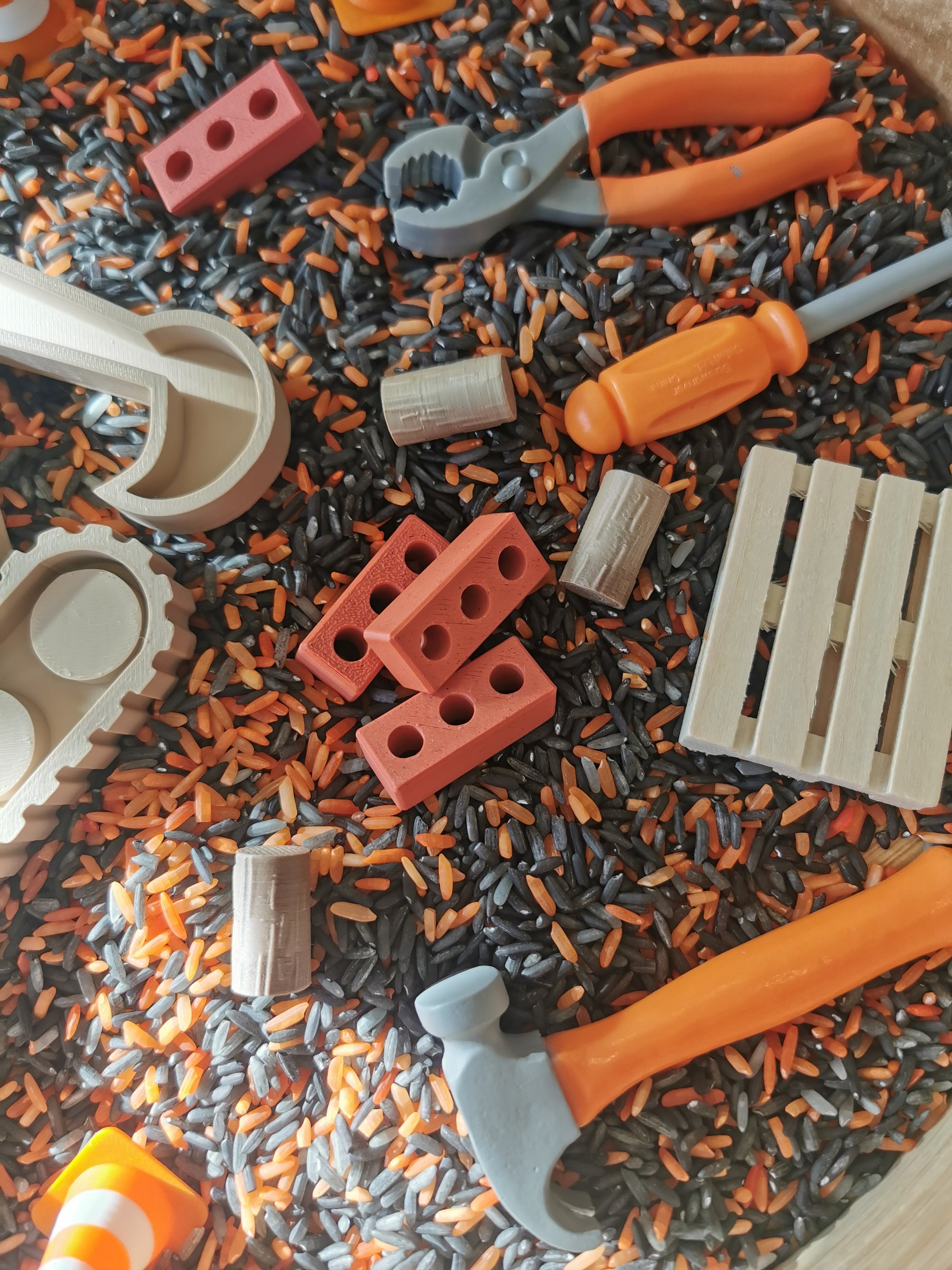 - Setje Magic Mini's constructie: 3x verkeerspion, 3x kleine boomstam, 4x baksteen (2-3cm)
