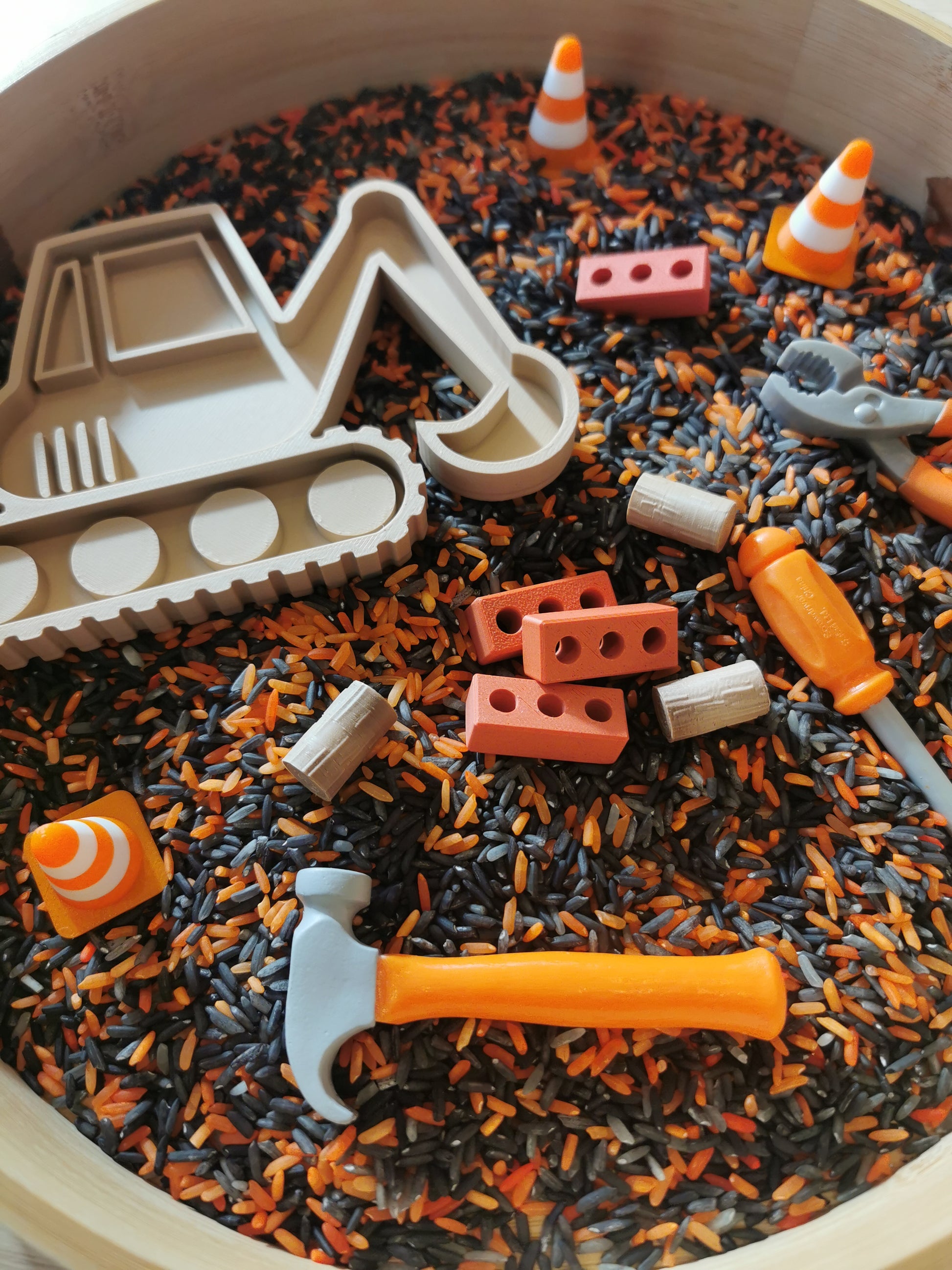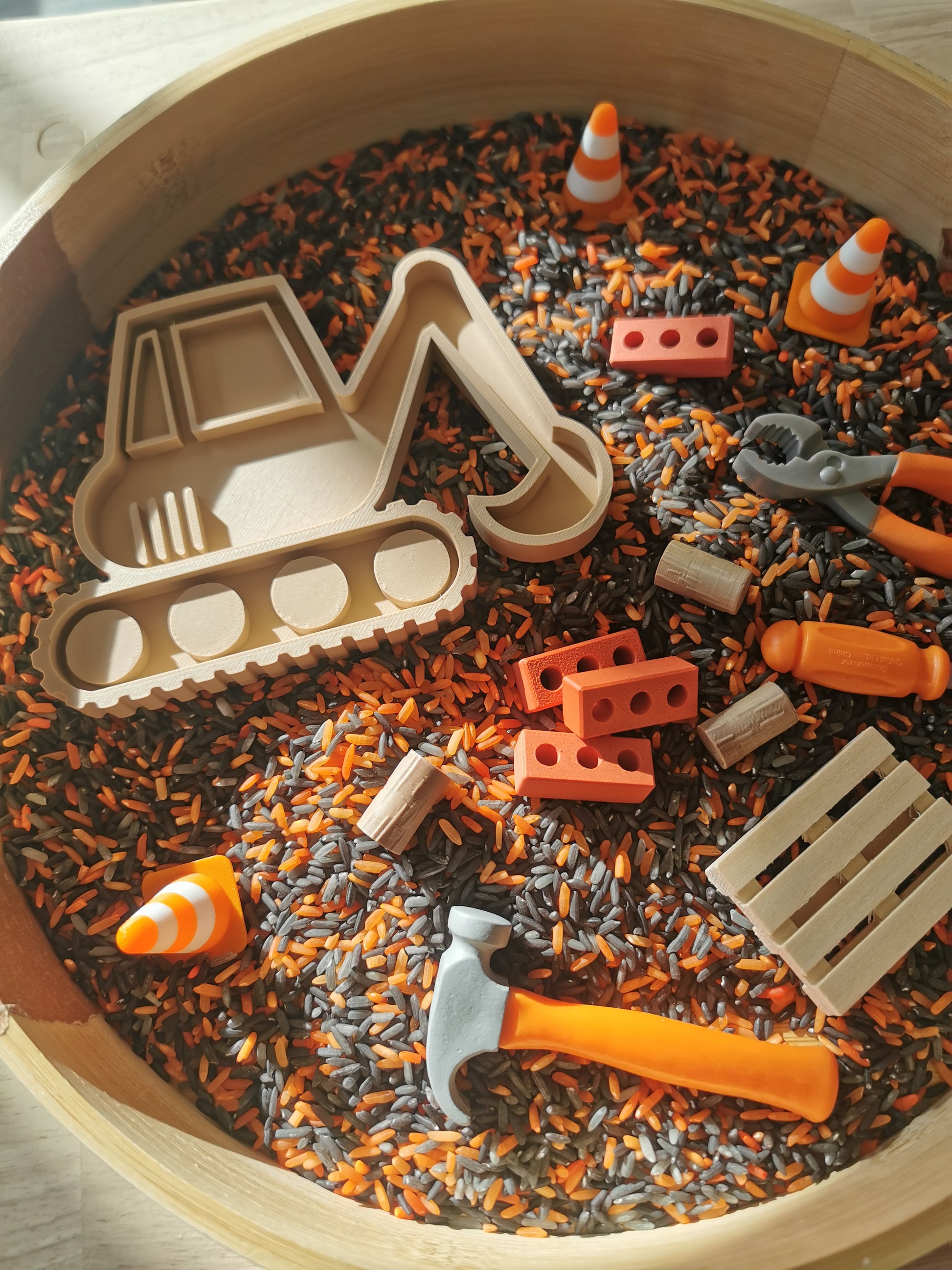 Is je kleintje gek op stapelen, gieten, graven en scheppen? Dan is deze box hem op het lijf geschreven! Met tal van boeiende materialen kan het kind z'n eigen bouwwerf creëren om fantasierijk spel en nieuwsgierigheid te stimuleren.