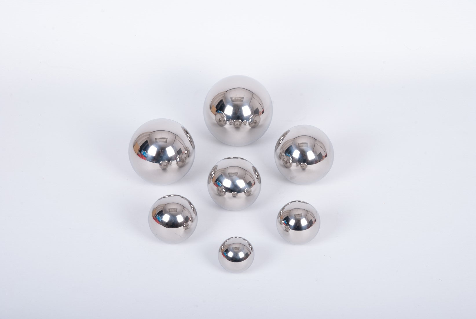 Elke set bevat zeven glanzende, roestvrijstalen ballen in verschillende groottes (van 5 tot 11 cm), elk gevuld met unieke materialen die een ander geluid produceren. Van zachte ritselingen tot vrolijke klingels – je kind zal gefascineerd zijn door de variatie aan geluiden én de vervormde spiegelbeelden die lijken op wat je door een groothoeklens ziet.