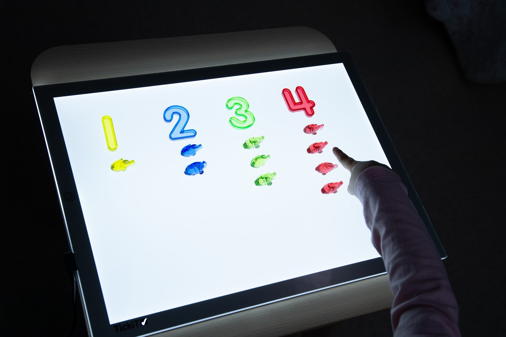 Dankzij de opstaande randen voelen de cijfers stevig en tastbaar aan. Kinderen kunnen er overheen trekken met een vinger of pen, ze in speeldeeg of kinetisch zand drukken, of ermee spelen op een lichtpaneel voor extra visuele prikkels.