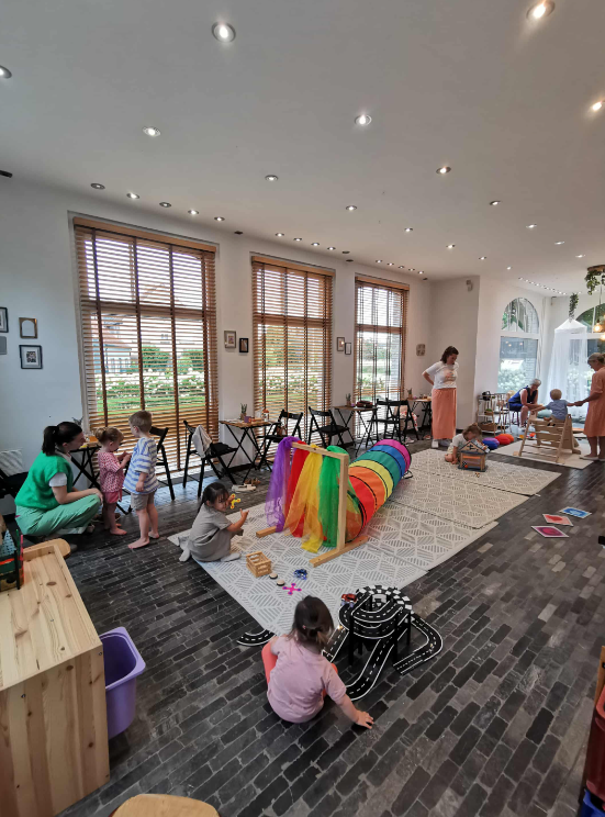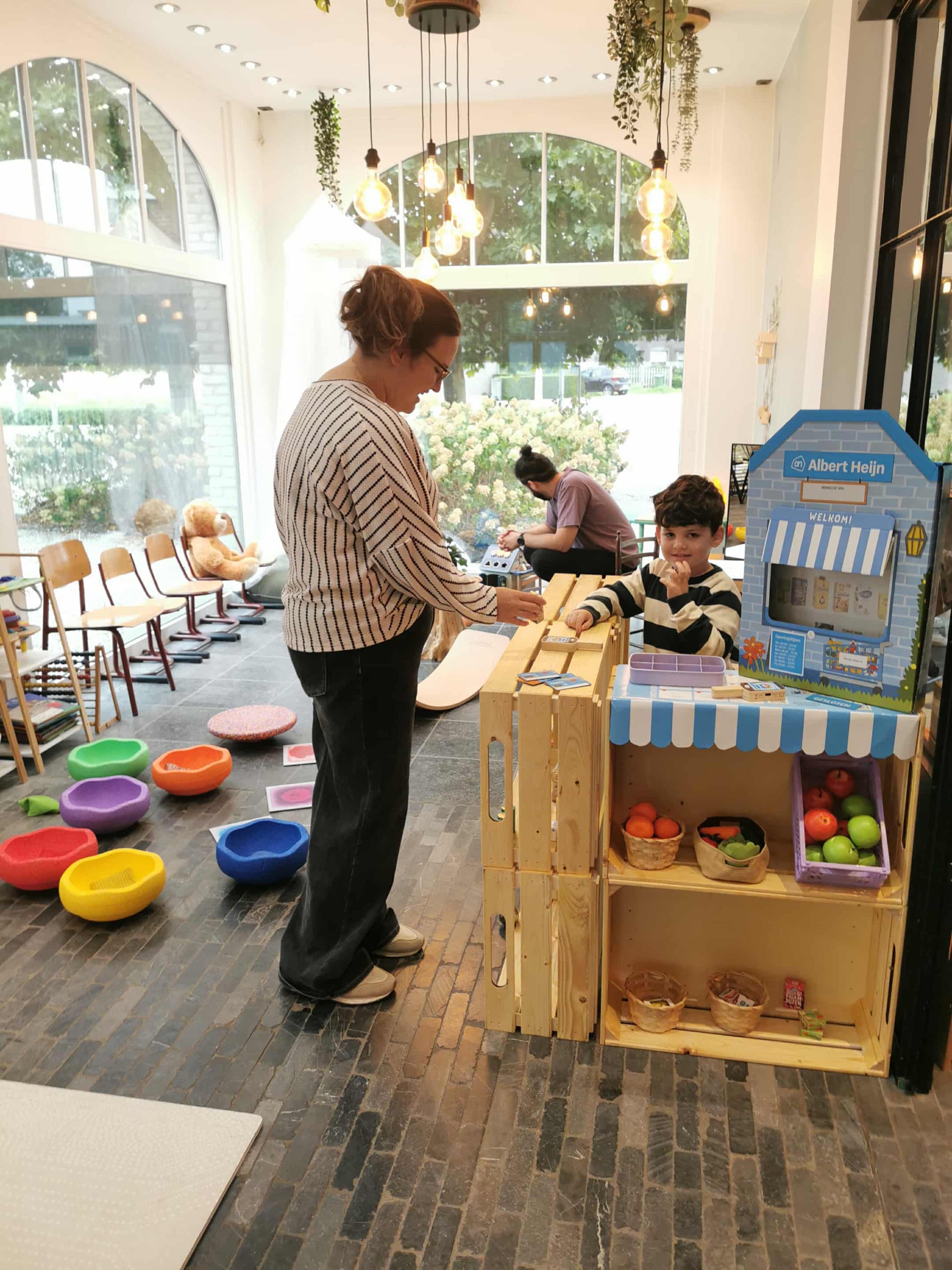 Het concept is simpel: kinderen bepalen zelf wat ze willen ontdekken. Of ze nu torens bouwen of hun eigen verhaal spelen met de fantasievolle figuren – de keuze is aan hen. En bij mooi weer? Dan openen we onze buitenruimte, zodat ze ook daar hun avontuur kunnen verderzetten.