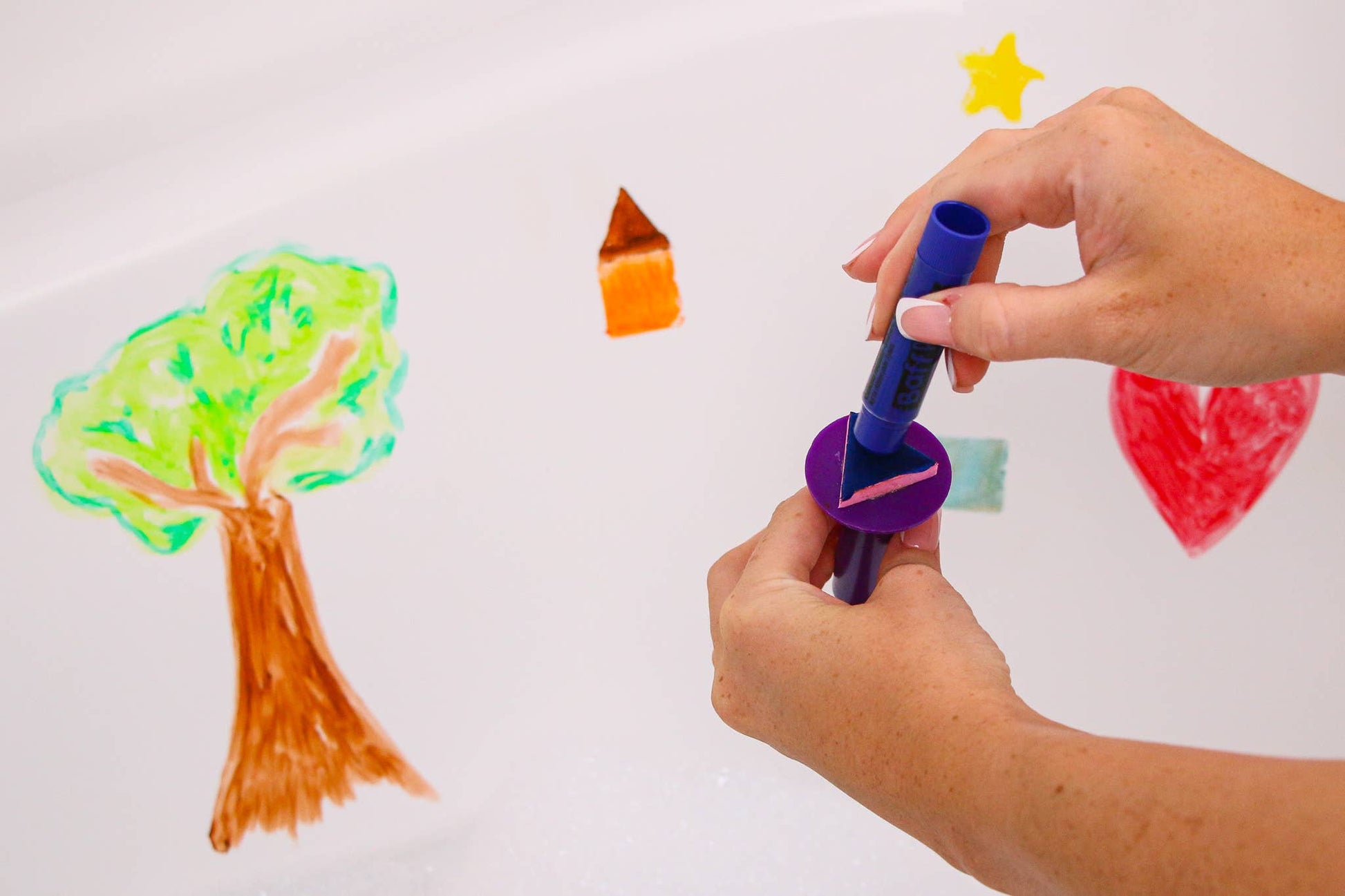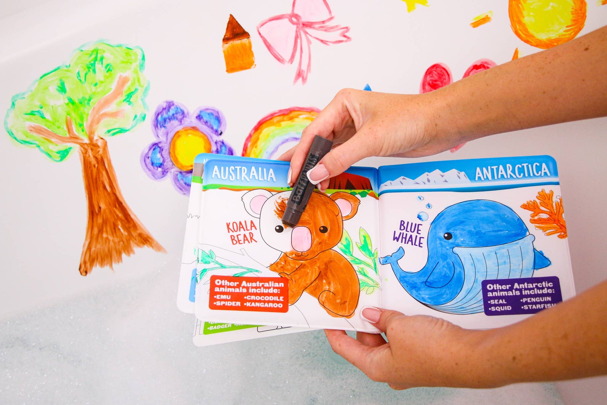 Laat je kleine kunstenaars hun creativiteit de vrije loop laten terwijl ze in het bad schilderen. Afwasbaar, niet-toxisch en eindeloos plezier voor badtijdspel.